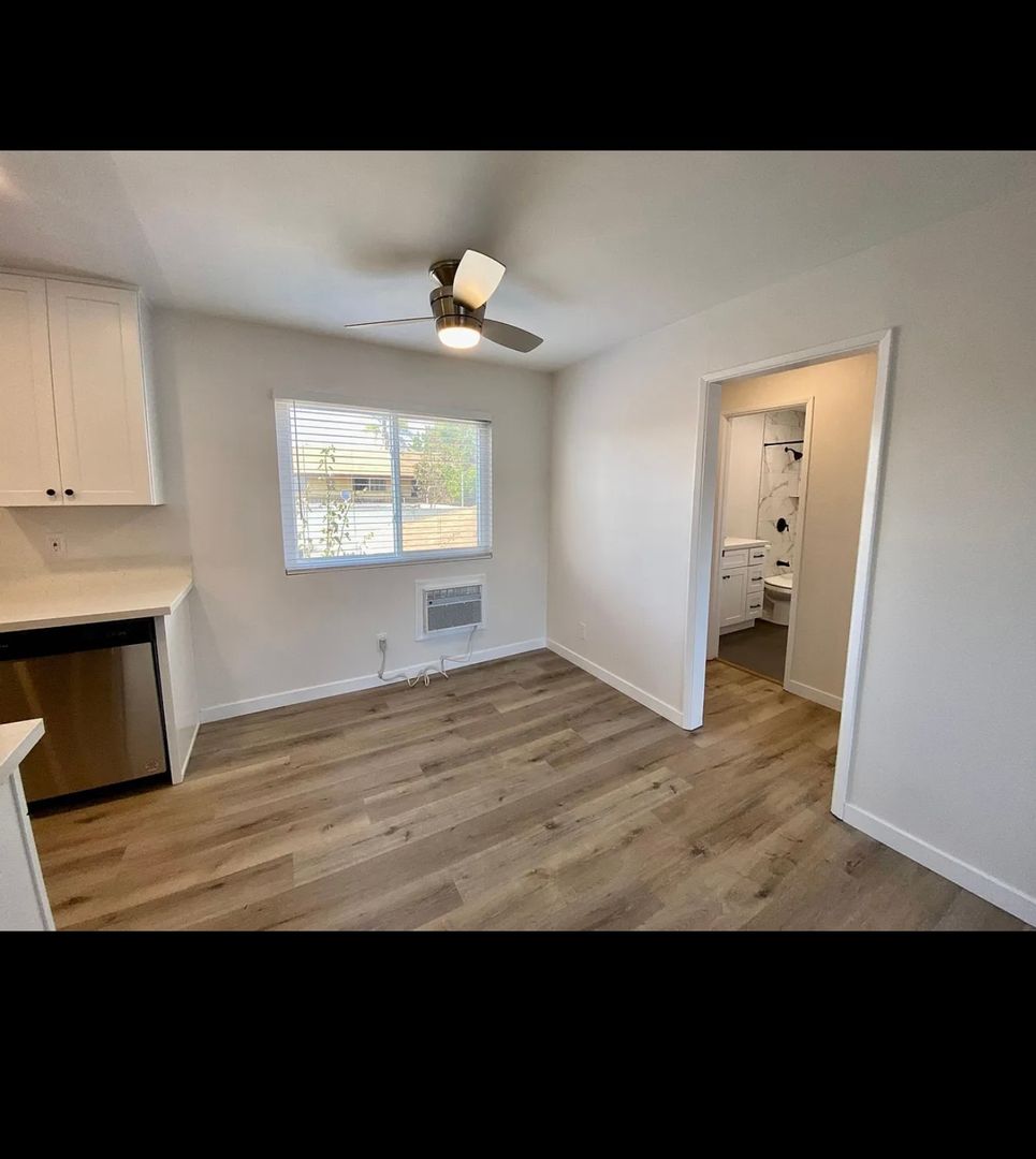 Discover this modern 1-bedroom, 1-bath apartment in San Diego, CA, featuring a designer kitchen with stainless steel appliances, quartz countertops and stylish cabinets. The home offers laminated wood flooring throughout and quartz surfaces continue in the bathroom for a cohesive, low-maintenance look. A wall AC unit provides climate control, and the unit includes one designated parking spot. Thoughtfully finished and well-appointed, this apartment is a practical choice for comfortable city living.
