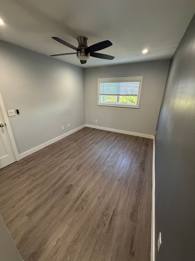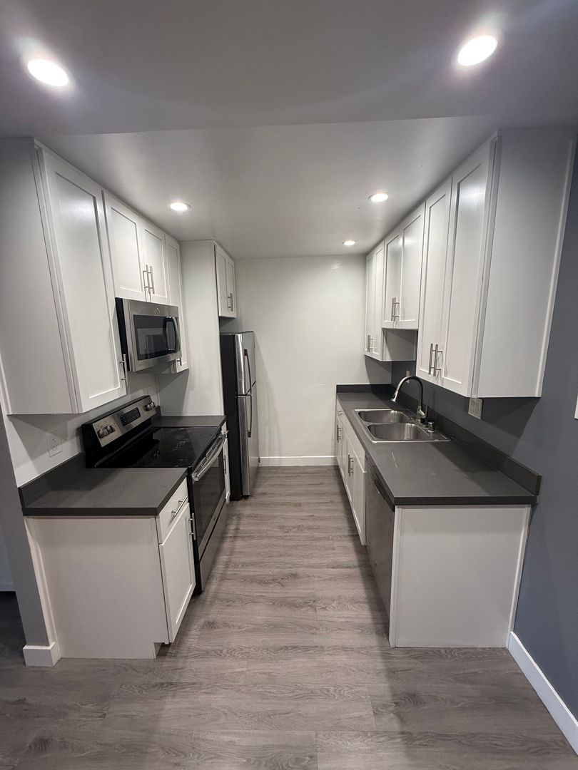 Experience the best of San Diego living in this newly remodeled one-bedroom, one-bathroom apartment. The unit boasts fresh paint and new laminated wood flooring throughout, creating a modern and inviting atmosphere. Stay cool and comfortable with the convenience of in-unit A/C. The kitchen and bathroom have been tastefully updated with new quartz countertops and stainless steel appliances, adding a touch of elegance to your daily routines. The apartment is part of a gated complex, offering an added layer of security and peace of mind. On-site laundry facilities make chore day a breeze. The complex also features a community patio, perfect for enjoying the beautiful San Diego weather. With its central location, you'll have easy access to all the city has to offer. The apartment's recessed lighting throughout adds a warm and cozy feel to this stylish space. Come and see the blend of comfort and convenience this apartment has to offer.