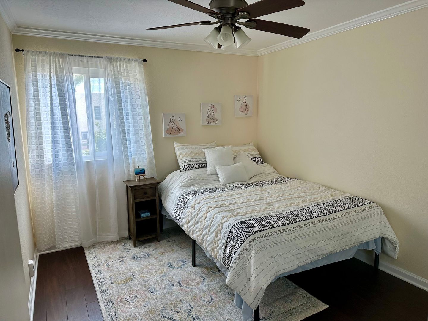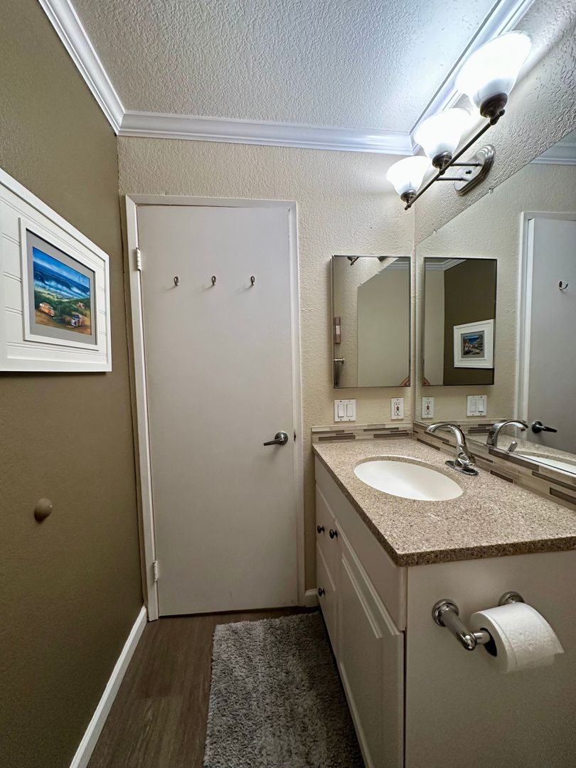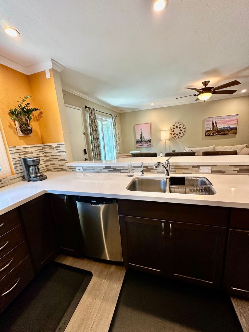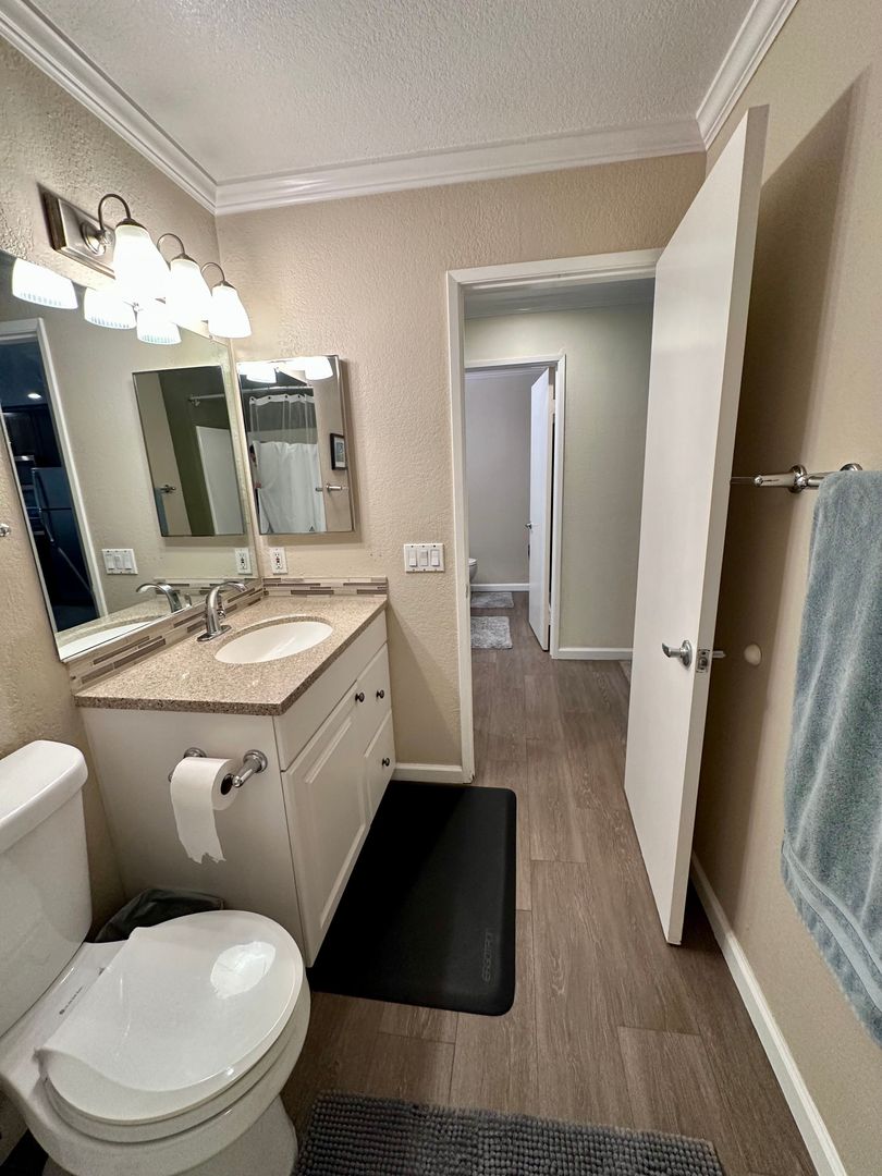 Beautifully maintained 2-bedroom, 1.5-bath condo featuring a large in-unit washer and dryer, dishwasher, and one assigned parking space. All utilities are included with a $200 monthly allowance toward SDGE bill. This comfortable condo features a king bed in the master bedroom and a queen bed in the second bedroom, both with brand-new memory foam mattresses for a great nights sleep.