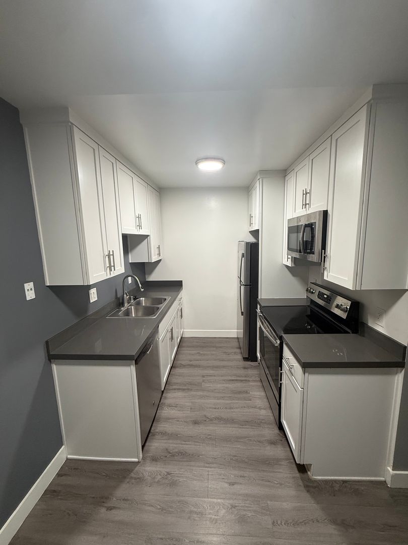 Experience the best of San Diego living in this newly remodeled one-bedroom, one-bathroom apartment. The unit boasts fresh paint and new laminated wood flooring throughout, creating a modern and inviting atmosphere. Stay cool and comfortable with the convenience of in-unit A/C. The kitchen and bathroom have been tastefully updated with new quartz countertops and stainless steel appliances, adding a touch of elegance to your daily routines. The apartment is part of a gated complex, offering an added layer of security and peace of mind. On-site laundry facilities make chore day a breeze. The complex also features a community patio, perfect for enjoying the beautiful San Diego weather. With its central location, you'll have easy access to all the city has to offer. The apartment's recessed lighting throughout adds a warm and cozy feel to this stylish space. Come and see the blend of comfort and convenience this apartment has to offer.